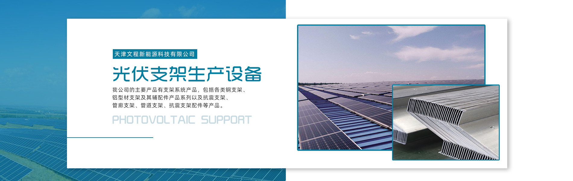 天津文程新能源科技有限公司成立于2021年,是專注于集中式、分布式、漁光互補(bǔ)和農(nóng)光互補(bǔ)等清潔能源發(fā)電的綜合性企業(yè) 公司是集設(shè)計(jì)、研發(fā)、生產(chǎn)、制造為一體的綜合型企業(yè)。公司占地面積20000平方米,注冊資金5000萬元整。公司坐落于華北鋼鐵重鎮(zhèn)--大邱莊,距天津市區(qū)50公里、鄰104和205國道及京滬高速,交通十分便捷。 本公司擁有三個(gè)生產(chǎn)車間,其中兩個(gè)冷彎型鋼車間,一個(gè)鋅鋁鎂型鋼車間,擁有自動冷彎成型機(jī)10條,自動數(shù)控沖孔機(jī)10條以及焊接加工等設(shè)備。主要生產(chǎn)產(chǎn)品有:太陽能光伏支架、各種規(guī)格的C/Z/U型鋼、抗震支架、管廊支架及整套配件等。